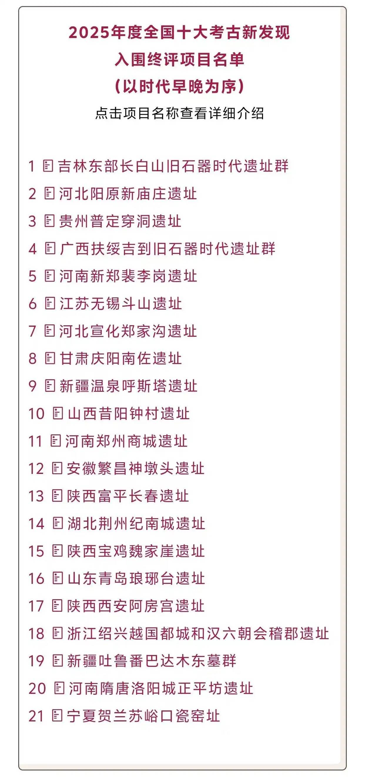 4月7日,2025年度全国十大考古新发现初评结果揭晓!根据投票结果,21个项目入围终评。其中,河南省的新郑裴李岗遗址、郑州商城考古新发现、隋唐洛阳城正平坊遗址三个项目顺利通过初评,入围终评。